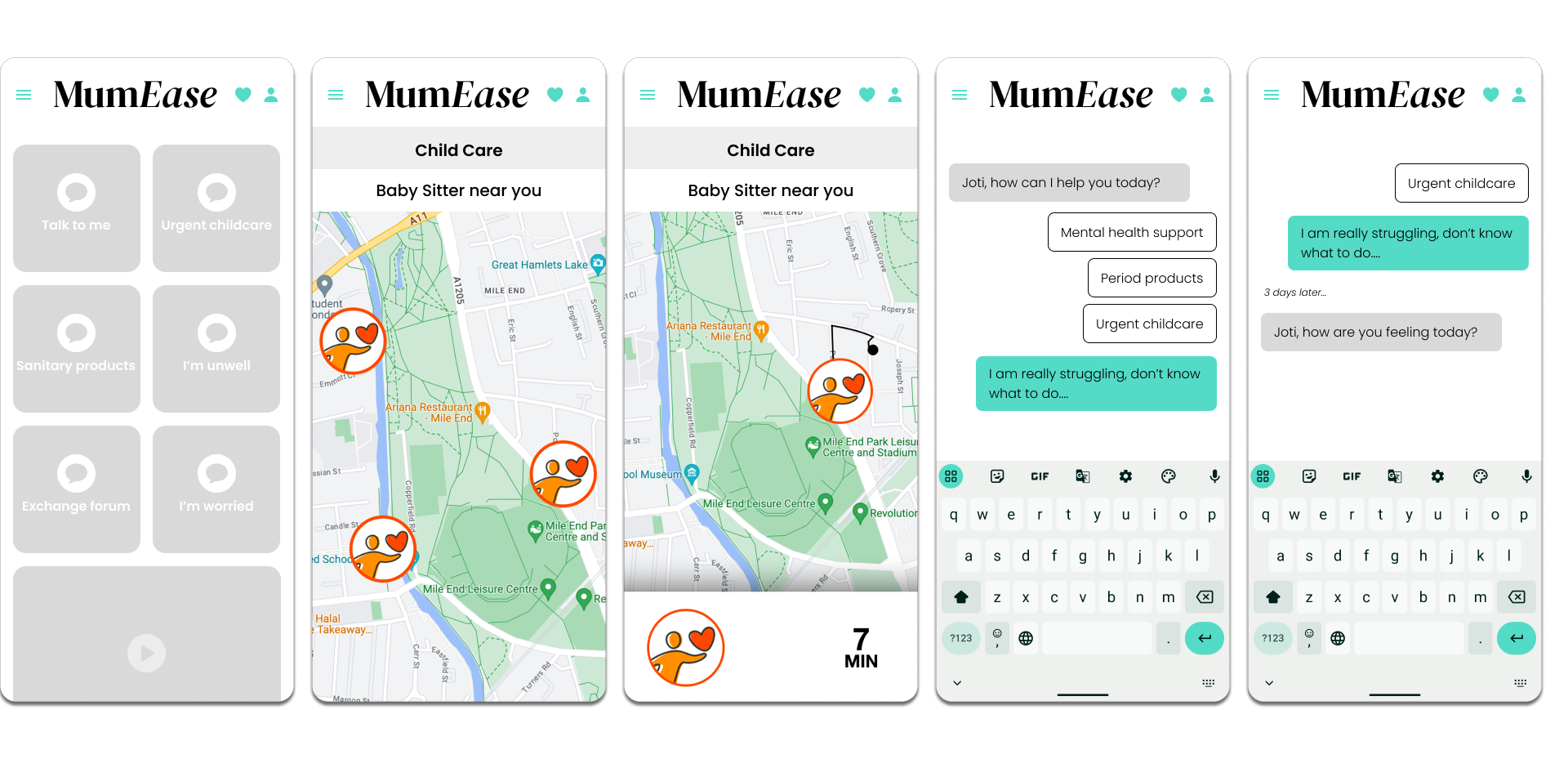 We discussed our different design ideas and selected the key features to move forward with. Recognising the gap in the market from our research, we opted for a progressive mobile web app and named it MumEase.